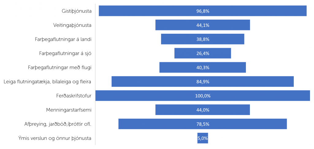 Fækkun í fjölda starfandi í nokkrum greinum í ferðaþjónustu