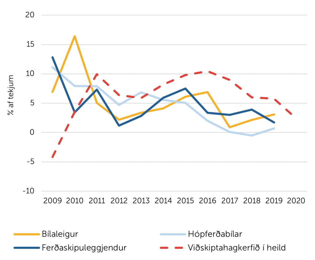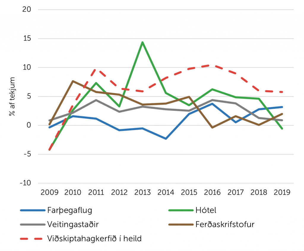 Eigið fé í nokkrum greinum ferðaþjónustu